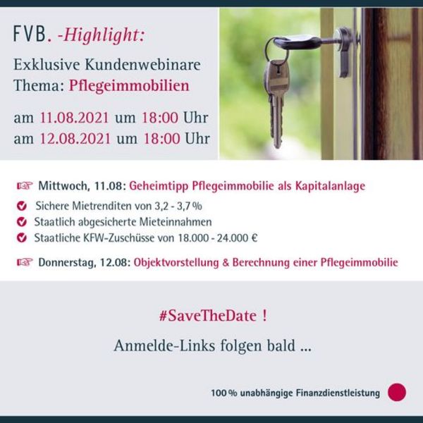 Mitte nächster Woche gibt es die nächste Chance, an unserem Info-Webinar teilzunehmen zum Thema „Pflegeimmobilie als attraktive Kapitalanlage“!